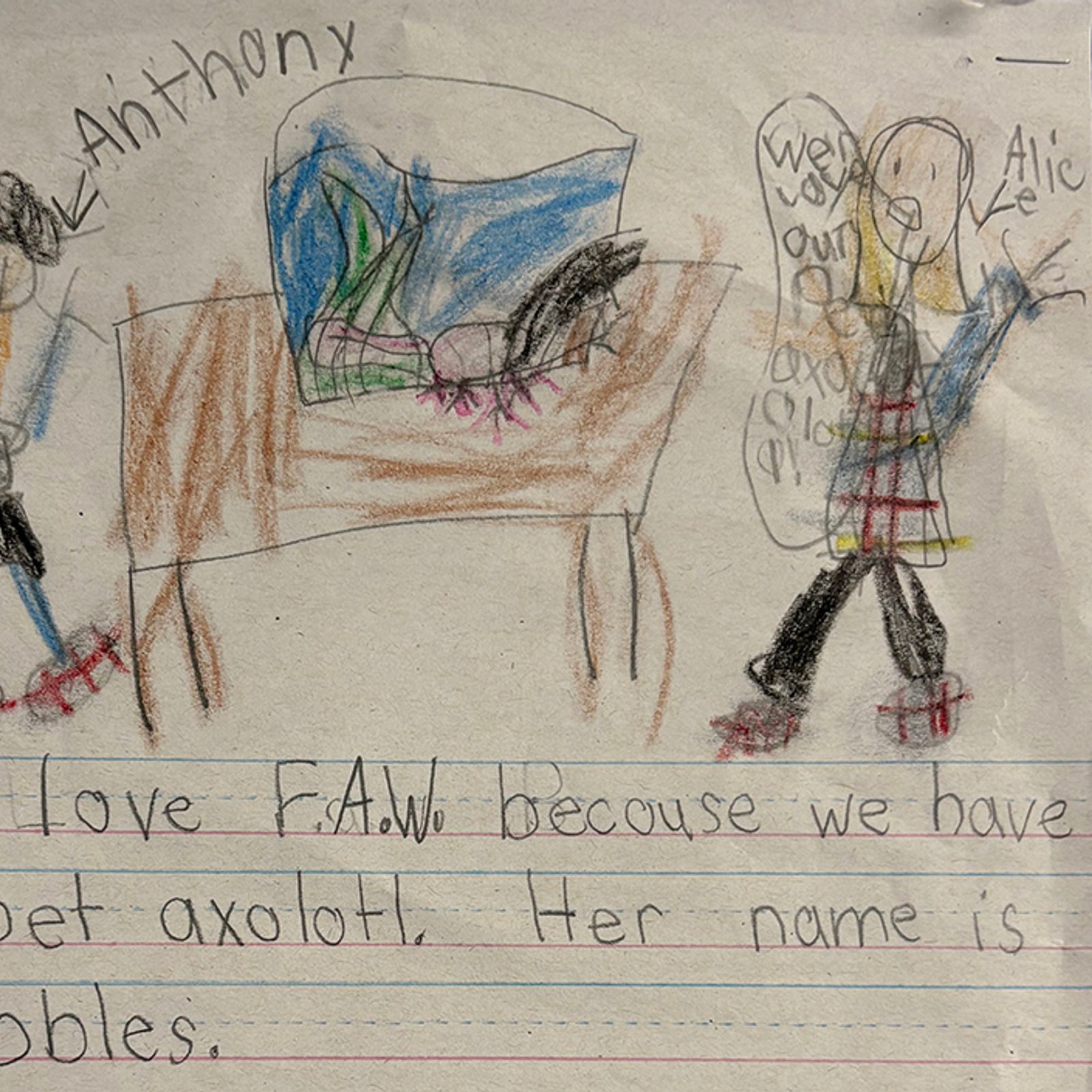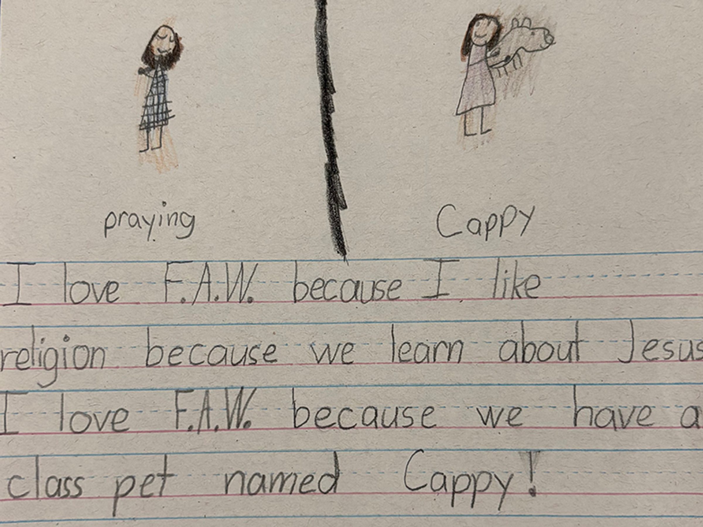 Artwork and writing by Lilah Bocian, first grade, Father Andrew White, S.J. School, Leonardtown
