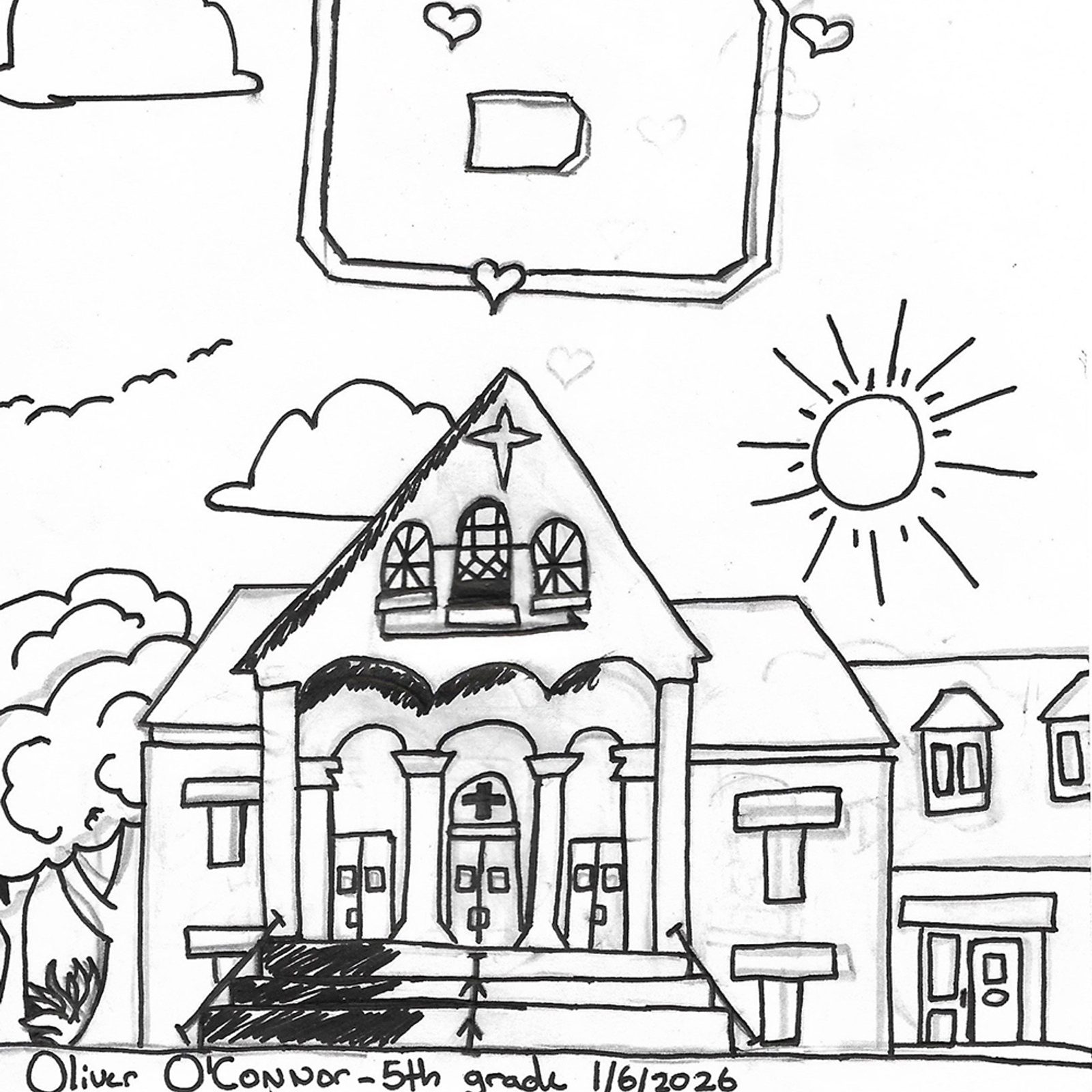 “I love my school because there’s always the kindness that comes out of everyone. Everybody gets treated well, and there’s just enough fun. BEST SCHOOL EVER!” – Artwork and writing by Oliver O’Connor, fifth grade, St. Bartholomew Catholic School, Bethesda