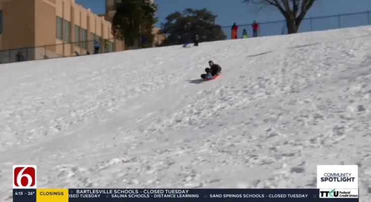Snow-covered hills throughout Green Country gave households a purpose to bundle up and head exterior as many faculties canceled lessons.