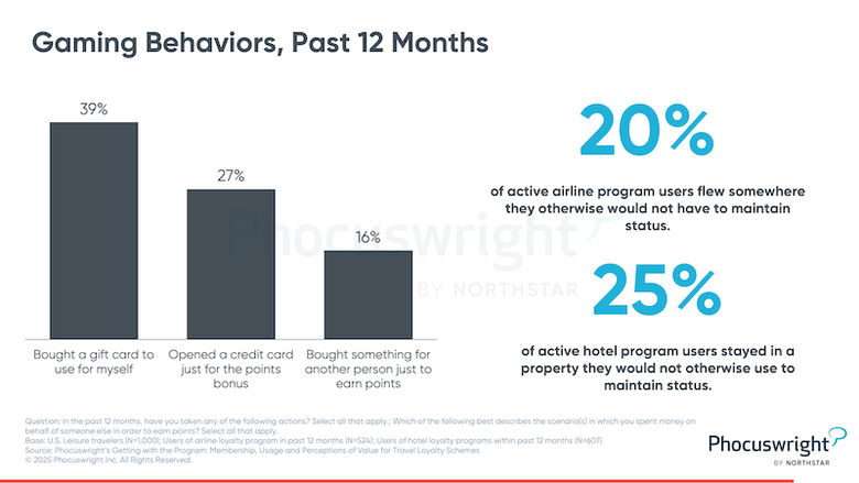 According to Phocuswright’s newest journey analysis report, Getting With the Program: Membership, Usage and Perceptions of Travel Loyalty Schemes, an enormous 84% of leisure vacationers admitted to collaborating in no less than one gaming habits previously 12 months alone. One in 5 vacationers who used an airline loyalty program previously yr (incomes or burning) additionally flew someplace they’d not in any other case have gone as a way to preserve their airline standing. Likewise, one in 4 energetic lodge program customers stayed in a property they’d not in any other case have chosen for the sake of sustaining their standing.