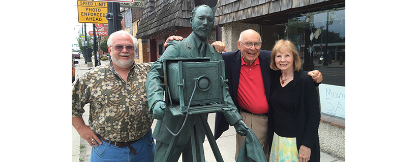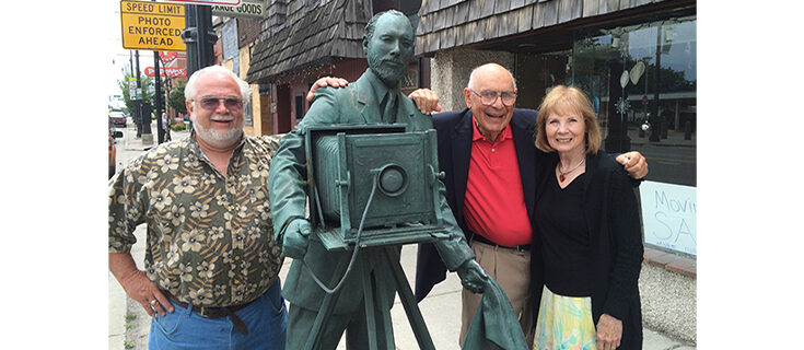 Pictured are (from left) Jeff Fink, nephew of the sculptor, Dick Nopar, and Crete library official Phyllis Monks. About 10 years in the past the statue was relocated from Jefferson Park to the general public library in Crete, IL.