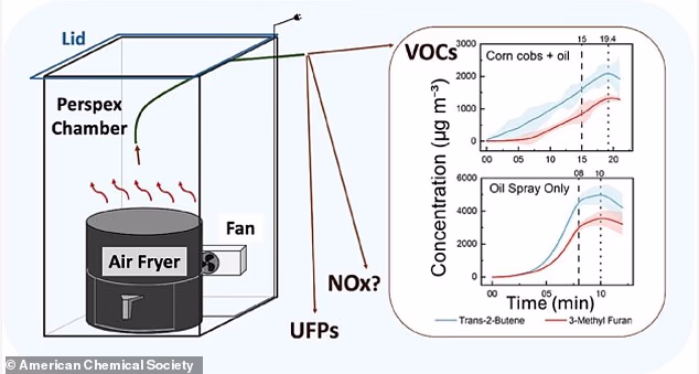 Ruijie Tang, first writer of the research, mentioned: ‘The outcomes confirmed that whereas meals with excessive fats content material do produce extra emissions within the air fryer, they produce solely a fraction of what we see in cooking strategies corresponding to shallow or deep–fats frying.’