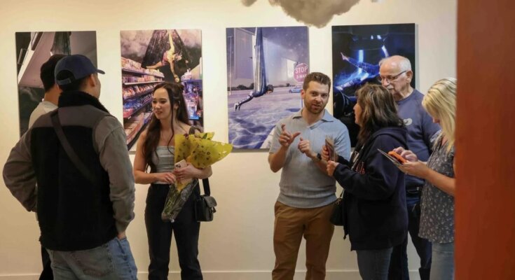 Part of the open home was the opening reception for “Dreams and Liminality,” a photography-based exhibition created by mixed-media artist Taylor Moon Castagnari. The exhibit combines pictures of acquainted areas like buying malls and airports with pictures of somebody, often Castagnari herself, suspended within the air from an aerial hammock.