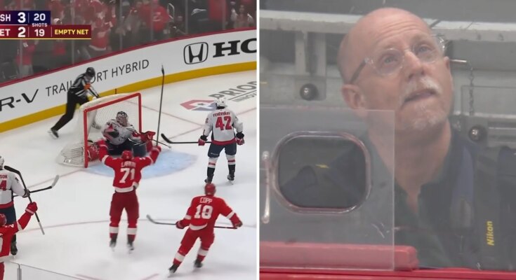 The NHL’s Detroit Red Wings bought a lucky bounce final night time on a late game-tying aim to ship its recreation towards the Washington Capitals into extra time, and the photographer’s cutout within the plexiglass ought to get credit score for the aim.