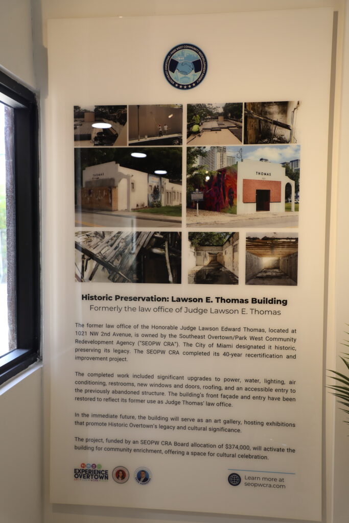 The exhibition is housed within the Lawson E. Thomas Building at 1021 NW 2nd Avenue, a web site of main historic significance. The constructing as soon as served because the workplace of Judge Lawson E. Thomas, Miami-Dade County’s first Black choose and a distinguished civil rights chief. Recently restored by the SEOPW CRA, the house has retained its architectural character whereas being up to date to make sure accessibility and long-term preservation.