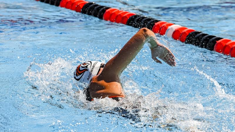 Agiomamitou was part of a first-place place twice extra: within the 500 yard free, clocking in a time of 4:55.85, and within the 400 yard free relay (3:26.48), swimming the primary leg in that occasion.