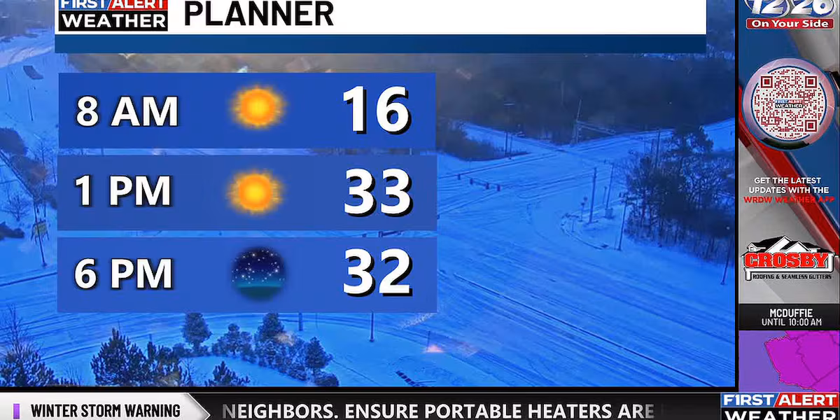 AUGUSTA, Ga. (WRDW/WAGT) – After a frigid begin with temps deep into the teenagers within the CSRA and appears like/wind chill temperatures as little as zero, temperatures will rise to above freezing round noon permitting closely traveled roads to enhance a bit Sunday afternoon. The exception might be shaded areas that may possible stay frozen and even lined with snow till temperatures rise into the higher 40s Monday afternoon.
