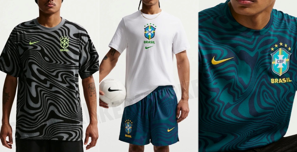 The Nike Brazil 2026 life-style assortment contains a mesmerizing, psychedelic “liquid” or “topographic” wavy sample that covers the primary clothes.
