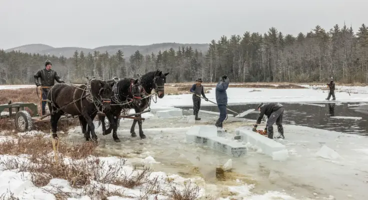 In thick boots and hand-sewn coats, a gaggle of males head out previous the scrub brush and snaggly timber that line the sides of the swampy shore. Where the ice is large and unbroken, they use a steel body fitted with a chainsaw to slip throughout the ice and reduce lengthy strips. Then, with spiked poles and steel tongs, they hoist the ice in sections roughly 10 toes by one foot, setting them on the stable floor of the pond and slicing them into 12-inch blocks.