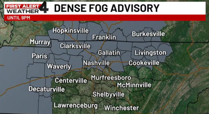 NASHVILLE, Tenn. (WSMV) – A Dense Fog Advisory is in impact 9ntil 9 p.m. CST.