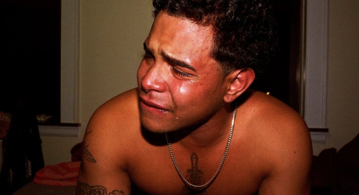 A shirtless man flexes his muscle groups Popeye-style, his eyes and stance directed performatively in direction of the digicam. Another man, additionally shirtless, is considered in close-up in a bed room. Tears stream down his face, which is illuminated by an unseen mild supply like a Caravaggio come to life. A younger lady reclines upon her bent arm, her gaze forged upwards, one eye and cheekbone accentuated by deep purple bruising. This is the world of Hard Feelings, a searing, decade-long picture sequence captured by ascendent photographer Dean Majd, documenting life amongst his inner-circle: the skating and graffiti communities in Queens, New York.