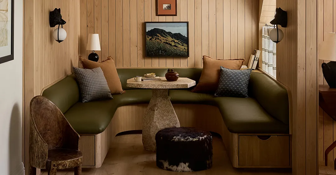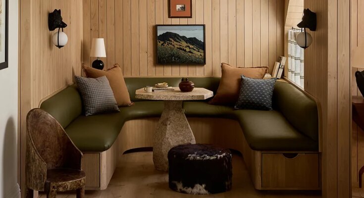 While the lounge is on the subtler aspect, the adjoining kitchen is a vivid love letter to Alta. The terracotta cupboards boast pine tree-shaped cutouts and the backsplash’s hand-painted tiles function animals native to the realm. Flowers leaned into the woodsy environment by remodeling a close-by area of interest that when featured a sizzling tub (sure, actually) into an inside “treehouse” topped with cedar shakes. For Sarah, the nook, which was loosely impressed by Pierre Yovanovitch’s iconic Andermatt Alps project, is a “magical, welcoming space” the place her children can play video games and chill with their pals.