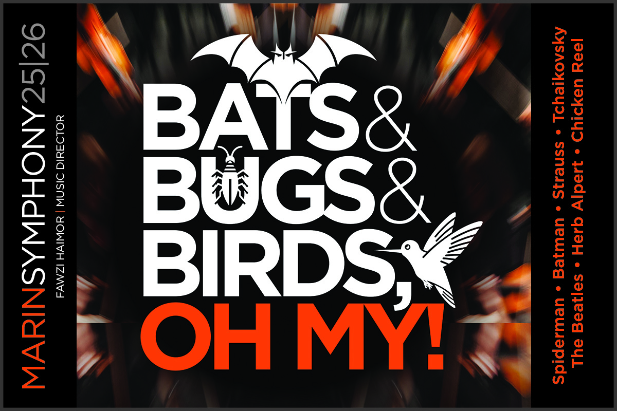 The Marin Symphony’s Pops live performance, Bats & Bugs & Birds, Oh My! takes place on the Marin Center Exhibit Hall, 20 Ave of the Flags, San Rafael, CA 94903.