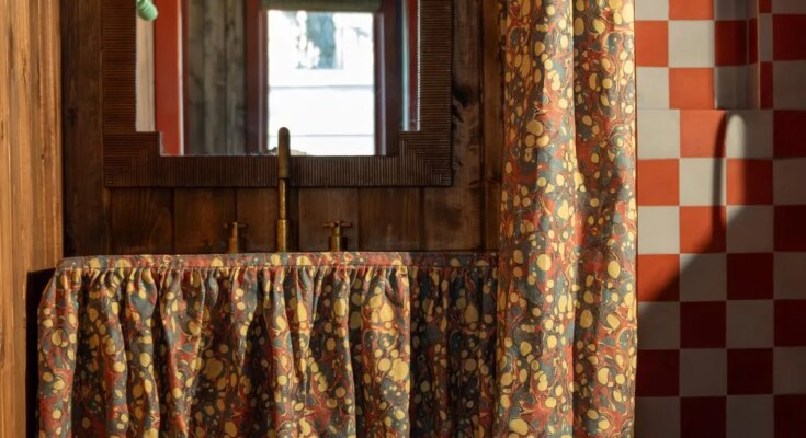 Her place to begin: tomato purple and powder blue checkerboard tile from the Concrete Collaborative x Domino collection. Inspired by sun-soaked coastal locales, the hand-pressed cement designs imbue a heat, artisan high quality (however, not like customized, are able to ship). From there, Brody scored a stone vainness high on Facebook Marketplace, marbled material from Spoonflower, and unlacquered brass {hardware} that paired seamlessly with the tile for an elegant cottage vibe.