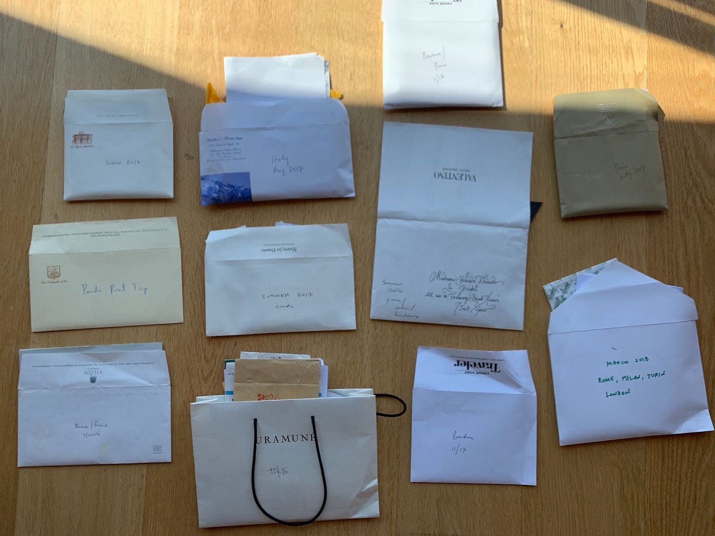 I don’t! If I’m touring for Shortlisted or an article, I tuck all of the supplies I would like to write down the piece right into a folder or the pocket of my carry-on to reference after I’m again at my desk, however in any other case I don’t actually do something with memorabilia exterior typically utilizing a museum ticket or boarding go or a Polaroid photograph as a bookmark. I’m, nevertheless, an enormous fan of sending postcards from the place I’m to my mother or the youngsters in my life. —Rebekah