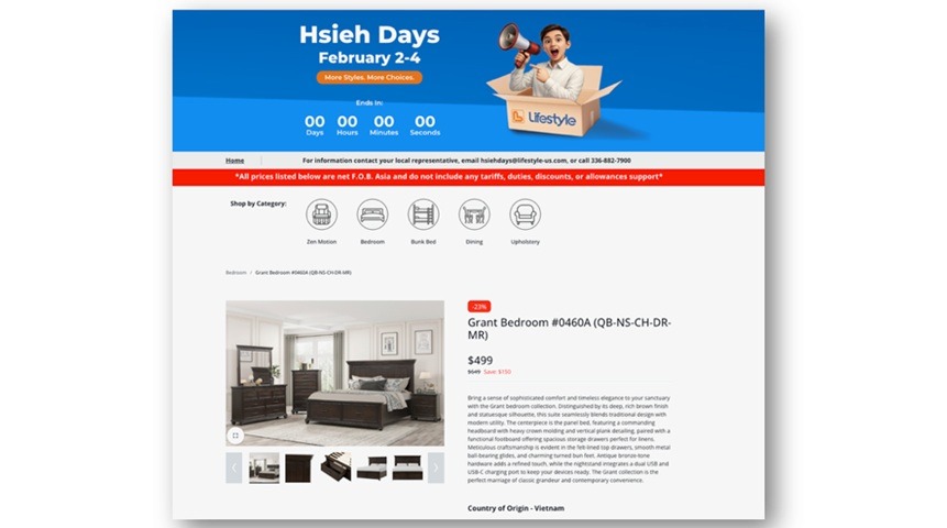 Lifestyle says the Grant bed room was one of many best-selling teams through the 2026 Hsieh Days.