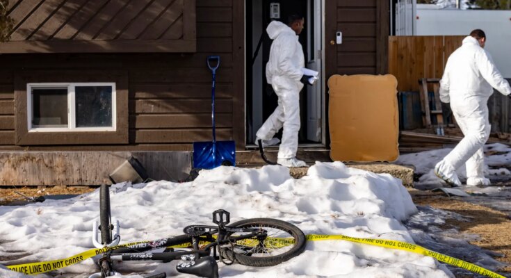 Police investigators in white protecting fits had been working Thursday on the Tumbler Ridge house the place the killings started.