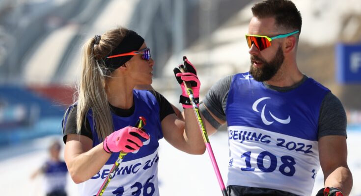 Oksana Masters and Aaron Pike on the Beijing 2022 Winter Paralympics. They bonded at a Para Nordic competitors in 2013 over their love of espresso.