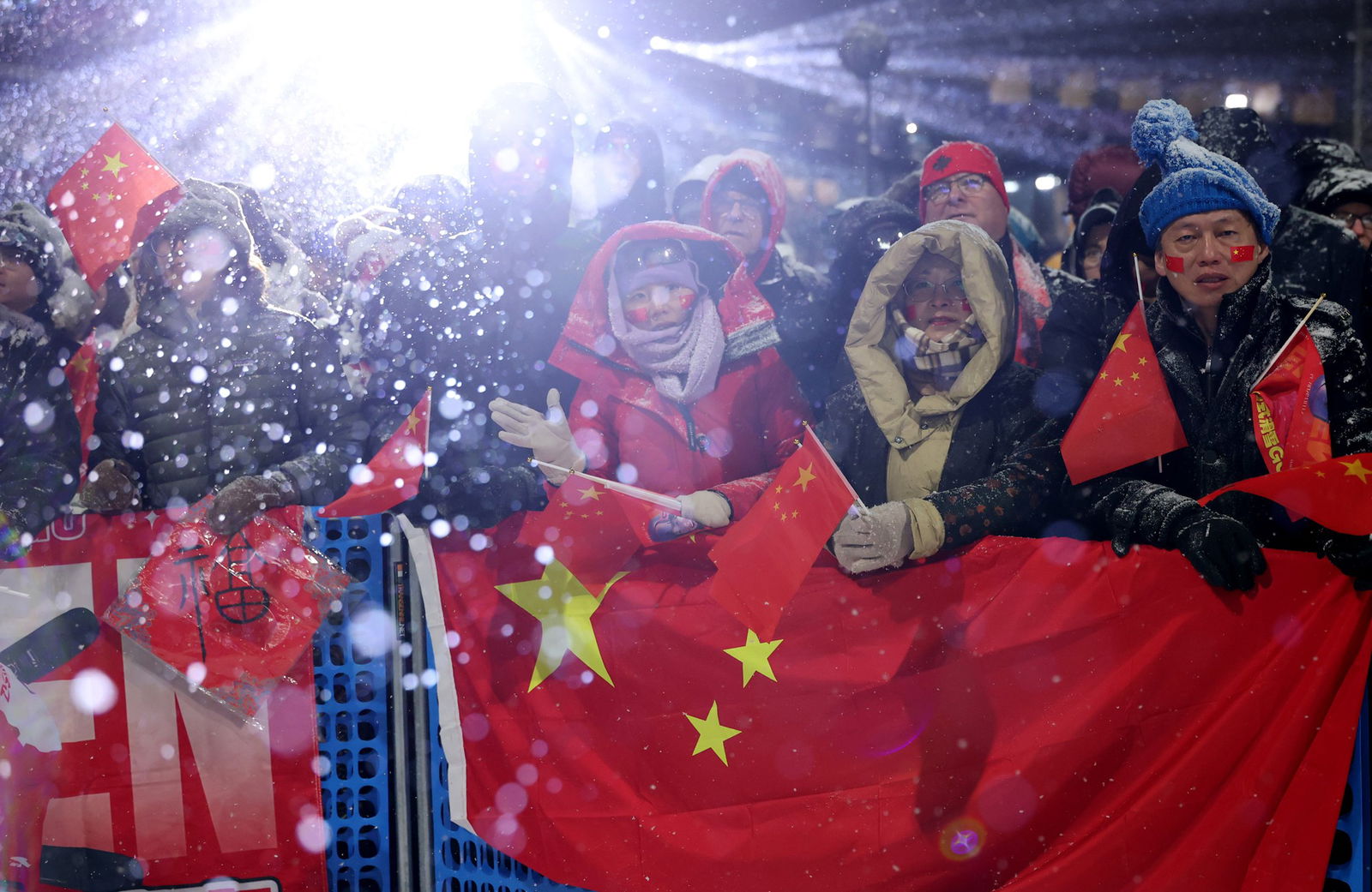 Gu is clearly pleased with the rating, racing away to rejoice with a sizeable contingent of Chinese followers watching on.