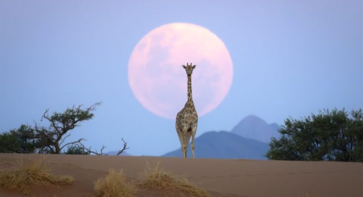 Goetsch’s breathtaking picture of a giraffe cresting a sand dune, staring down the barrel of the lens from the middle of a hazy pink moon, is among the many finest in a jaw-dropping bunch of photographs which have helped the South African construct a powerful social media following.
