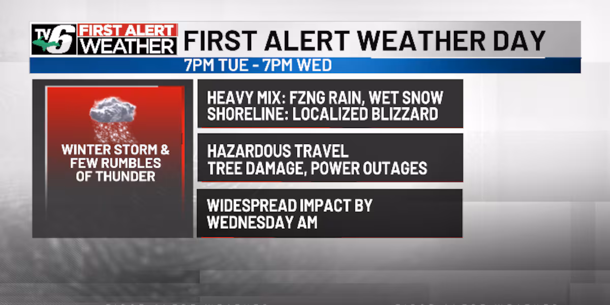 A powerful Northern Plains system approaches Upper Michigan midweek, f bringing in a heavy mixture of ice, moist snow and rain — plus excessive winds. A First Alert Weather Day is in impact Tuesday night time by means of Wednesday with rising journey hazards and potential energy outages anticipated. Another system threatens with messy blended precipitation and excessive winds Friday, adopted by on and off lake impact snow this weekend as colder air returns to the area.