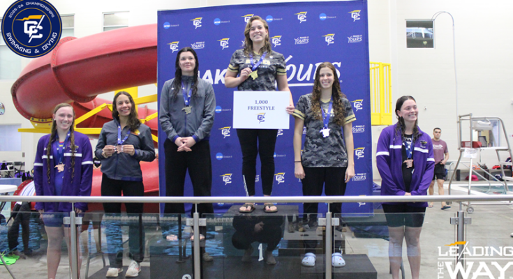 UNC Pembroke’s Britta Schwengle received the ladies’s 1000 yard freestyle with a brand new convention document and NCAA B commonplace of 10:19.32. Eulalie Clech of Emmanuel University additionally posted an NCAA B commonplace with a time of 10:21.95.