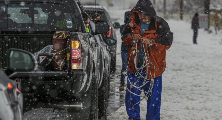 An company advisory for the L.A.-Ventura county line went out Wednesday saying snow chains have been required on all automobiles besides passenger automobiles and light-duty vans outfitted with snow tires on not less than two-drive wheels. Those with snow tires, the advisory warned, should nonetheless carry chains.