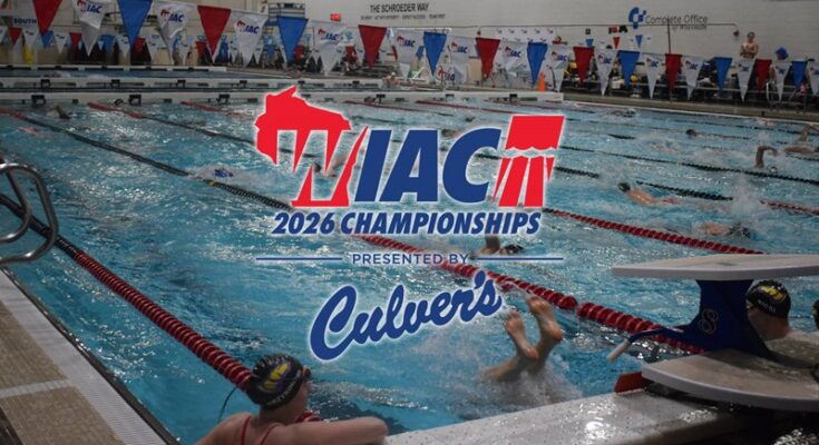 BROWN DEER, Wis.–Two-time defending champion University of Wisconsin-Eau Claire has the lead after the primary day of competitors on the Wisconsin Intercollegiate Athletic Conference (WIAC) Men’s Swimming & Diving Championship (introduced by Culver’s) at Walter Schroeder Aquatic Center on Feb. 18.