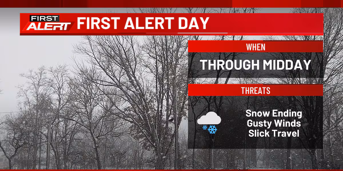 Snow will transfer out of the world by the mid-morning, however don’t count on to really feel a lot aid from the chilly simply but. Clearing skies will transfer in because the system exits, however gusty winds will make it really feel even colder all through the day.