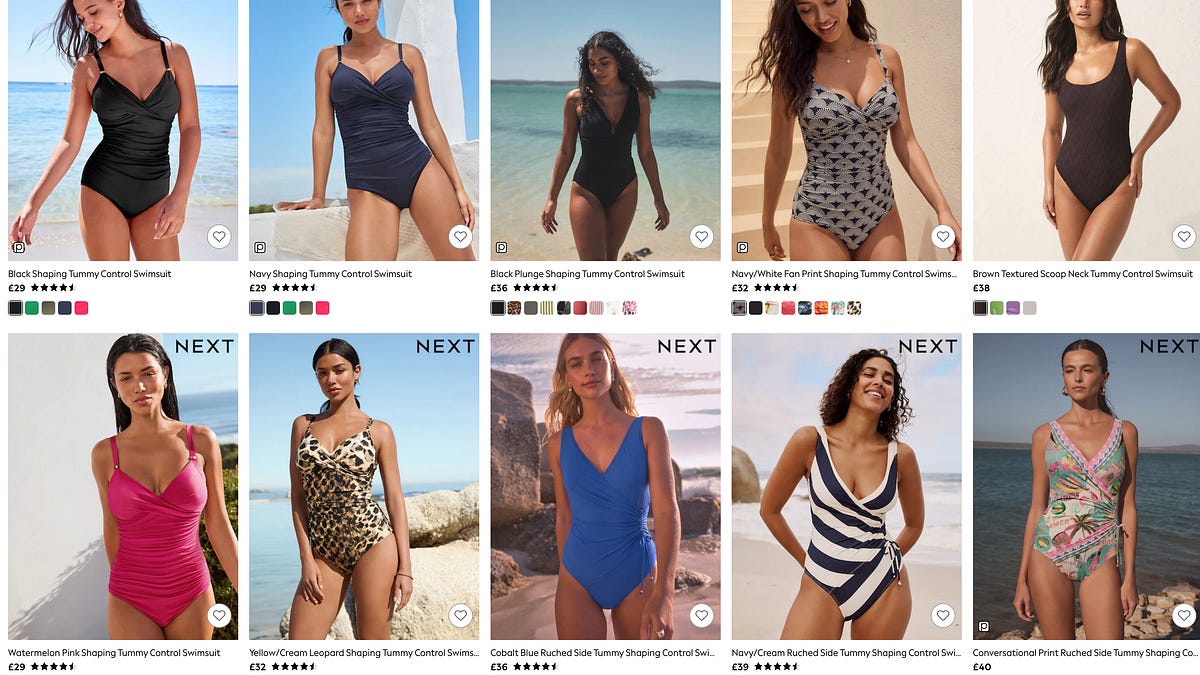 I need you to take a look at the costume above. Really look. Can we kind an orderly queue and agree that it’s achingly miserable? If it might communicate it could say ‘don’t fear Barbara, your wrinkly bits aren’t going to hassle anybody, as a result of we’ve focus-grouped this and we’re going to cowl up your repugnant meat sack in essentially the most smart means we are able to consider.’ Thick straps to hoik up the bazongas which can be now not up by your ears as a result of Nature had her means with you- test. Bit of ruching so as to add zhuzh (with the bonus of hiding your frankly disgusting and offensive abdomen)- test. Low rise leg as a result of we actually don’t wish to see your historic pubes- test. Modelled by a younger lass so match she’d look beautiful in a mouldy bin bag- test. A jaunty color that claims ‘don’t fear, there’s life in you but, Babs!’ Check, test, bloody test.