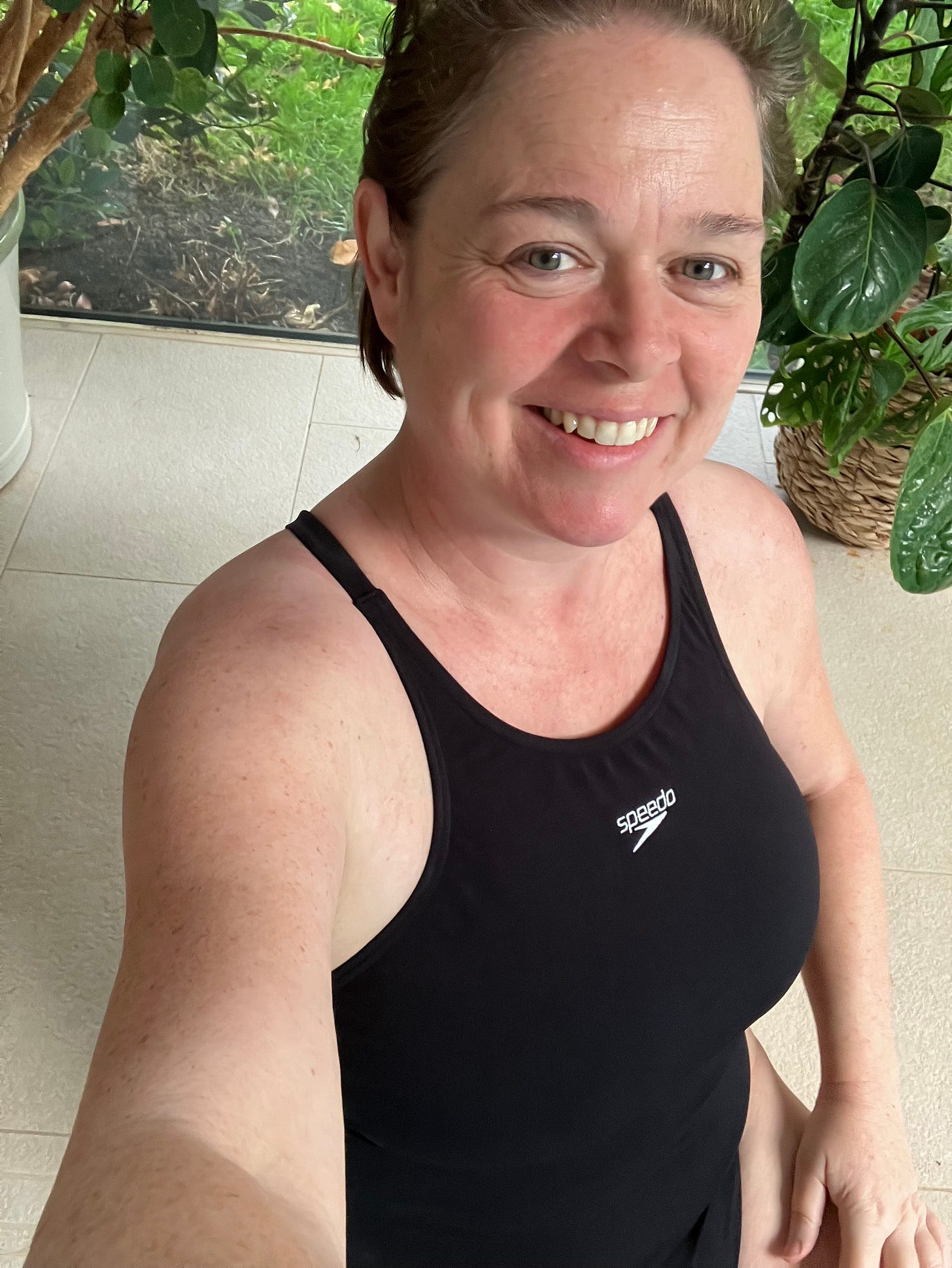 To end on a positive, the costume below is the closest I’ve come to the ideal- trad Speedo with a little boob shelf. The bum on it has already gone saggy, but you can’t have everything. And yes, I am aware that I look like a minor Royal who’s about to open a regional leisure centre in this photo. It’s something just that happens to women in middle age- you start looking innately more sensible and it’s very irking.