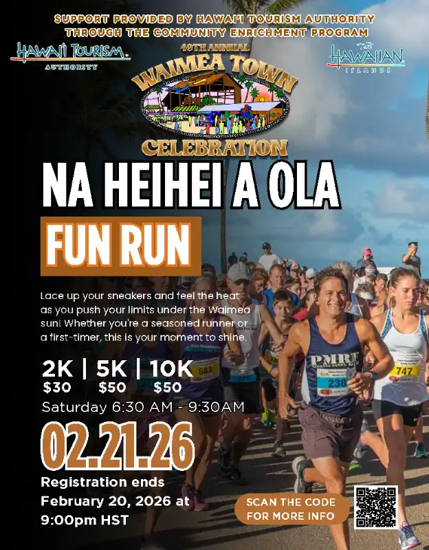 #NaHeiheiaola # Iwikua #KauaiFunRun #WaimeaFunRun #WaimeaTownCelebration #HawaiiTourismAuthroity #CommunityEnrichmentProgram #HistoricWaimeaTheater #CouncilforNativeHawaiianAdvancement #kauaiFestival #KauaiCommunityCalendar #KauaiEvents #WhatsOnKauai #KauaiHappenings #PacificMediaGroup #KauaiNow #advert