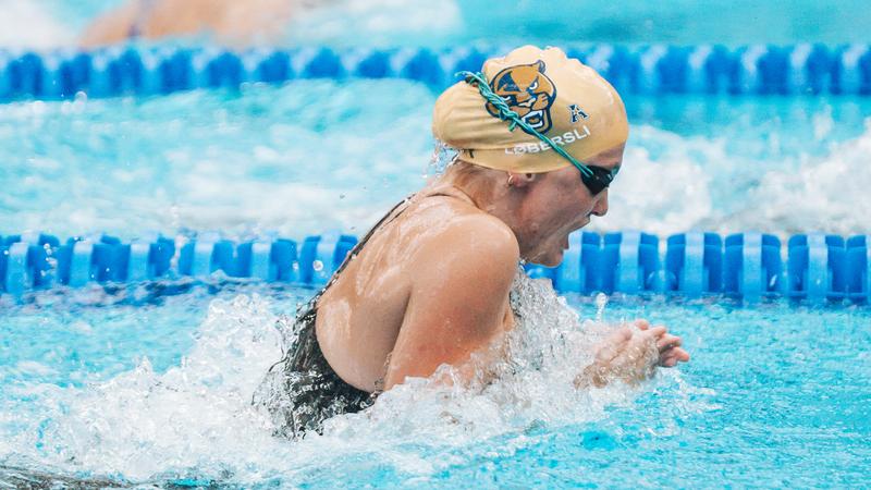 Sophomore Frida Stretre Løbersli earned silver within the 100 breaststroke with a time of 1:00.80, marking FIU’s lone medal of the night.