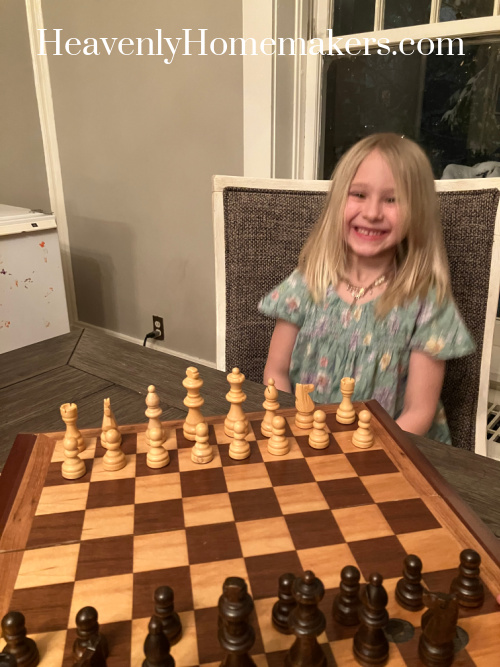 Anna’s ABA conduct tech has been educating her to play Chess – are you able to imagine it? She is by some means loving this and figuring it out! As a consequence, she arrange this recreation all by herself, after which began making an attempt to show me the right way to play. It was very candy.