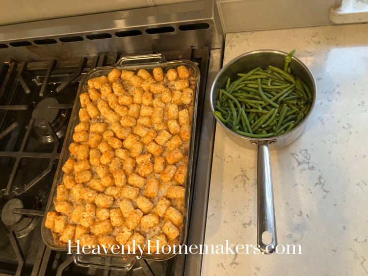 I had baked a pan of Stick of Butter Rice that morning, then turned it into Tator Tot Casserole for dinner that evening.