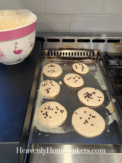 Friday was a Snow Day! This referred to as for a breakfast of Chocolate Chip Pancakes and Sausage.
