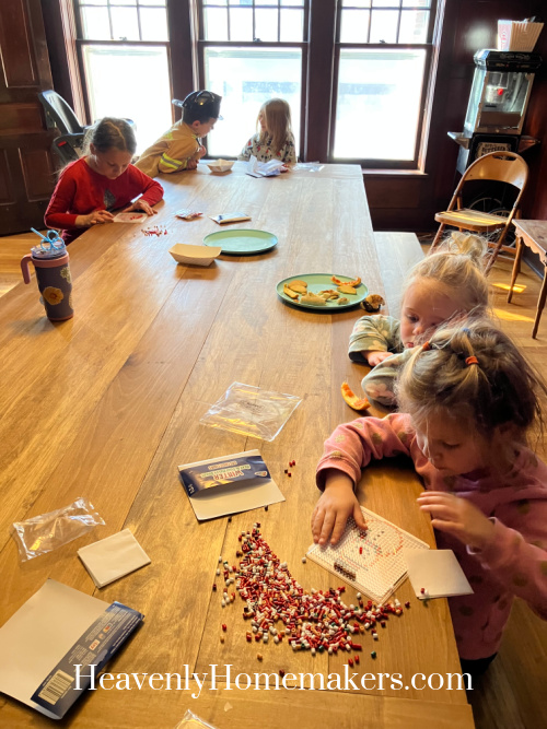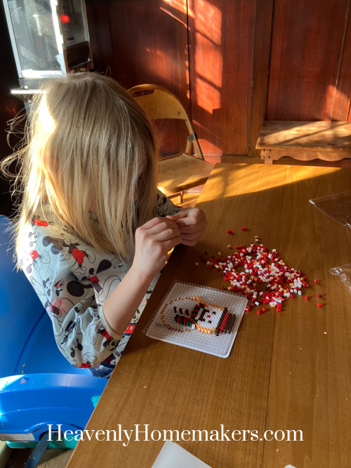 We pulled out a craft mission that afternoon. Those little beads are extra difficult than one would hope.