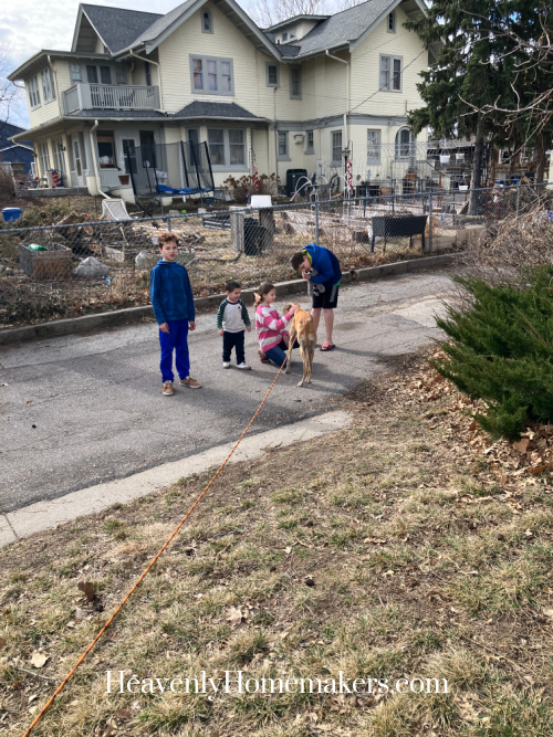 Praise God that the climate was superb all throughout today of illness and breaks from college. The youngsters had been outdoors once more most of Tuesday, and we had an journey with a run away canine. We referred to as the quantity on his collar and some minutes later, we had an opportunity to satisfy one in every of our neighbors that we hadn’t met but! The youngsters had been all so enthusiastic about fixing this “crisis.”