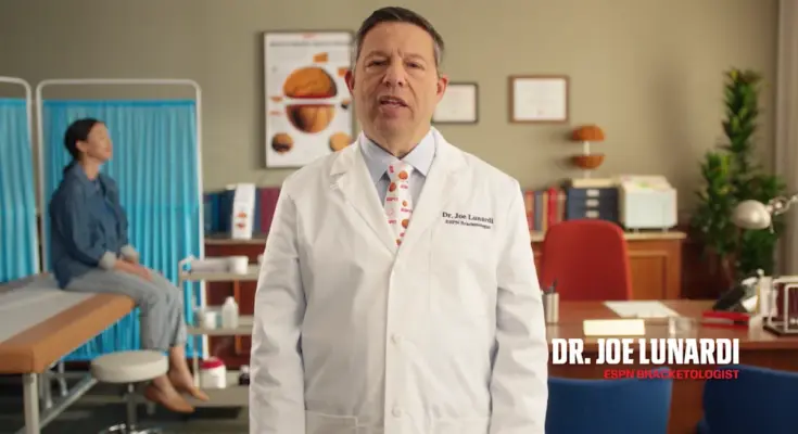 In the advert, the “patients” appear to see the define of brackets of their day-to-day lives, together with of their meals, the route they take whereas climbing, and the way in which they crammed out a Scantron sheet whereas taking a take a look at. These are all clear signs of Bracketbrain to ESPN bracketologist Joe Lunardi, who seems within the advert as the pinnacle of ESPN’s Department of Bracketology.