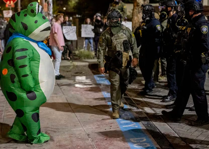 It begins with frogs. Remember the story in my book, the one concerning the proverbial frogs within the pot of boiling water? I wrote a chapter known as “Don’t be the frog,” which inspired individuals to get up and see what Trump was doing to our nation, earlier than it was too late. If you appreciated that a part of the guide, you’ll love Miles’ and my dialog about what got here subsequent—the Portland frog, and the way a lot enjoyable—sure enjoyable—Miles and the parents at Defiance.org are planning for tomorrow round that theme.