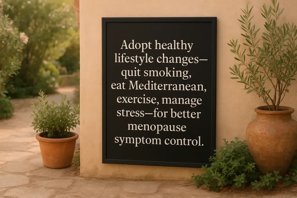 Smoking cessation and limiting alcohol consumption are critical lifestyle changes during menopause. Quitting smoking reduces earlier onset of menopause and lessens symptom severity, whereas moderating alcohol consumption can stop worsening of sizzling flashes, sleep disturbances, and temper problems.