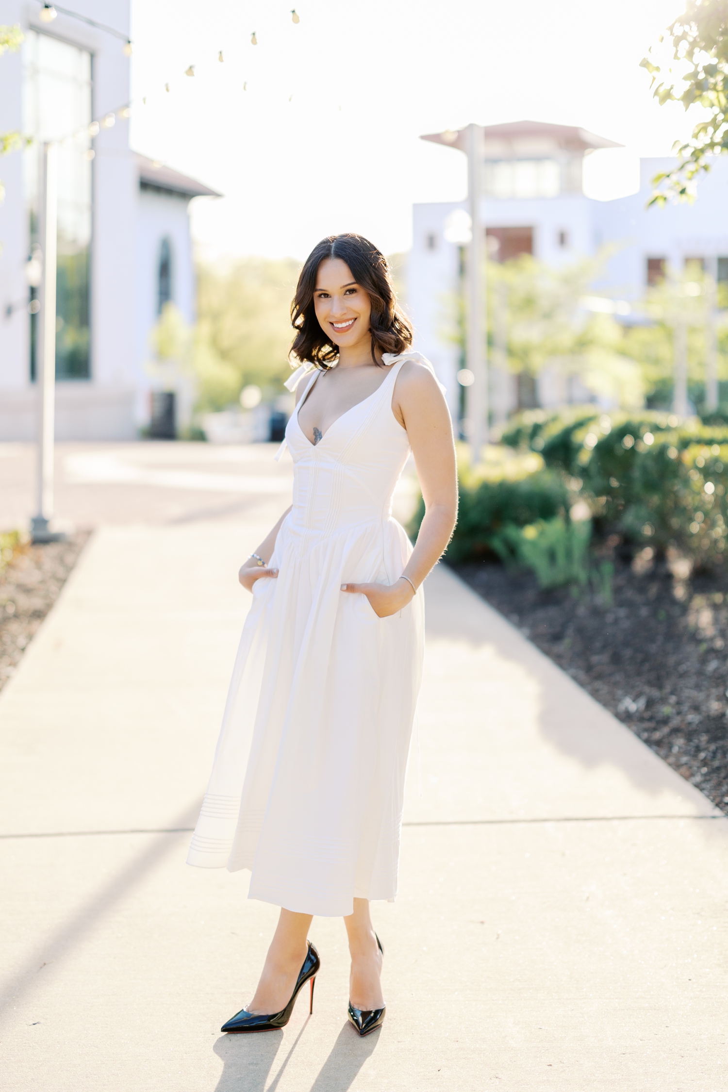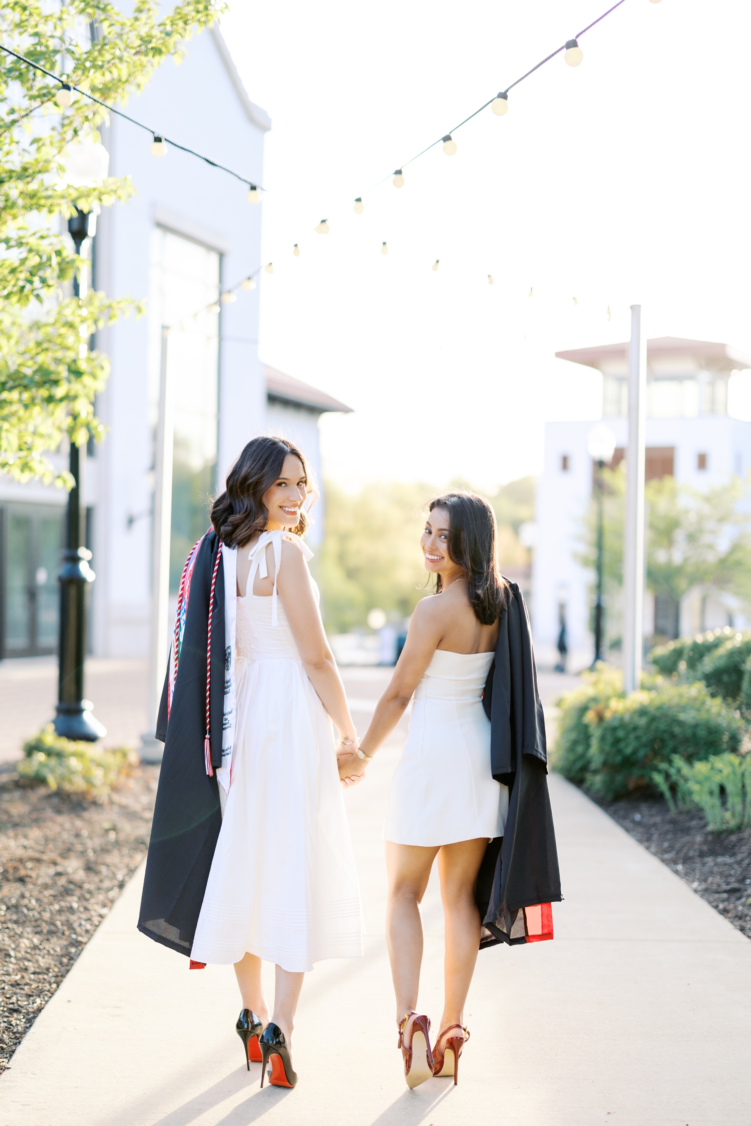 Nearly each Montclair senior chooses one thing white, and for good motive. Montclair’s crimson pairs superbly with basic neutrals. A white gown images superbly towards the darkish cap and robe. It feels clear and timeless. Structured silhouettes and minimal prints and patterns are likely to {photograph} finest.