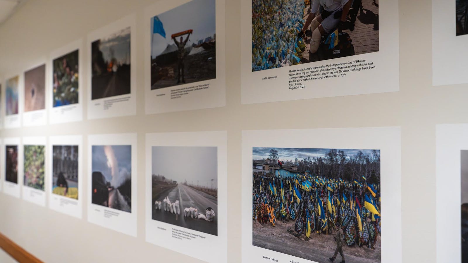 “The exhibition shows different sides of the war: soldiers killed, wounded and alive; grieving families; destroyed cities; but also resilience, love and everyday life continuing despite everything,” Smolko mentioned.