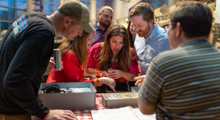 But for a extra fiery expertise, the evening ends with a dwell lava pour — a rarity for museums. The pours and different science demonstrations all through the evening are carried out by a crew of educated professionals, together with Ryan Nelson, who has been working with the museum for a decade.