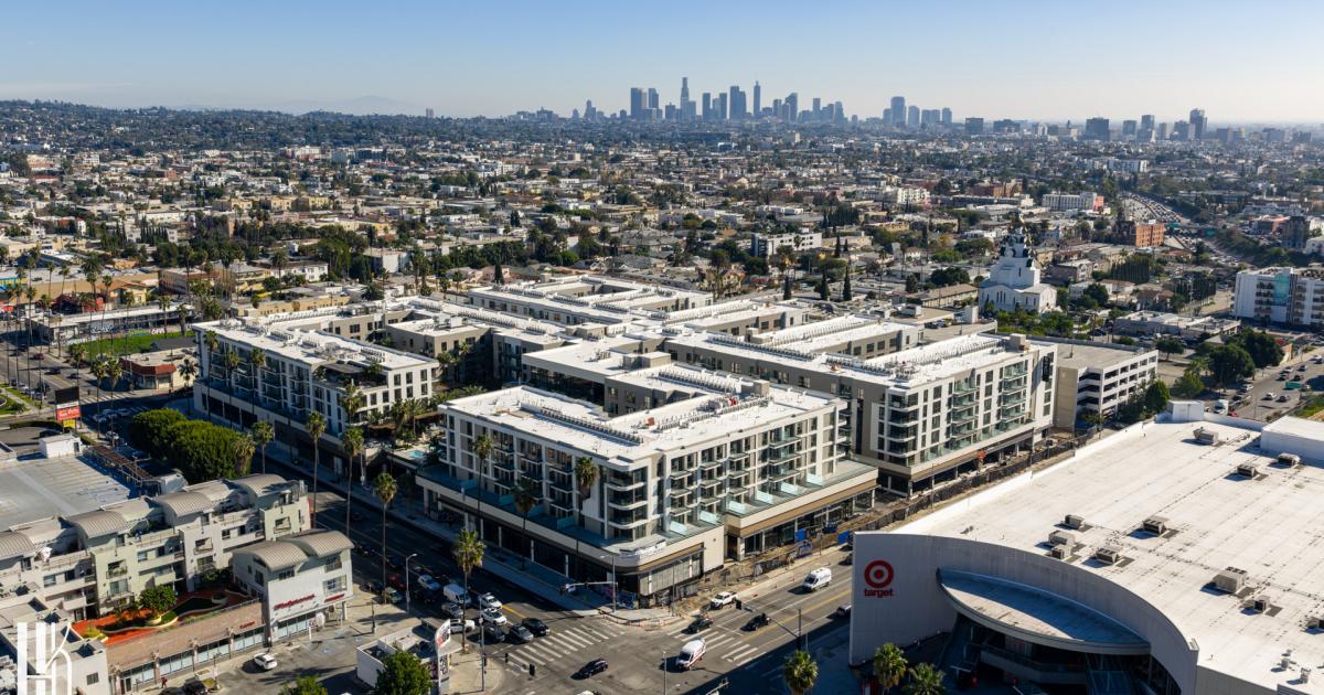 At the intersection of Sunset Boulevard and Western Avenue in Hollywood, the outside of a brand new mixed-use condominium complicated American Commercial Equities is nearing completion.