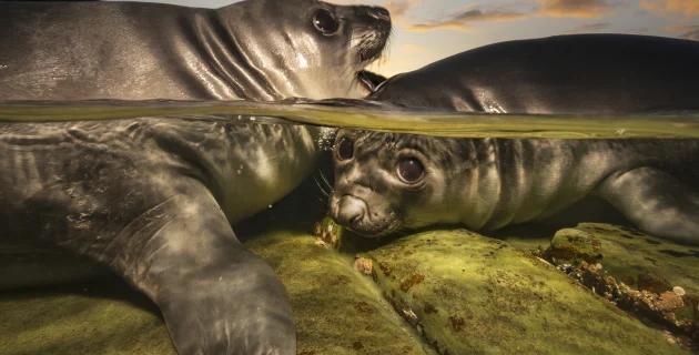 “Smith used a special dome he built himself to capture the under-over perspective, perfectly balancing his lighting on the pups’ fur with the setting sun. Elephant seals were hunted to the brink of extinction, but their recovery over the last century is a powerful example of ocean resilience.”