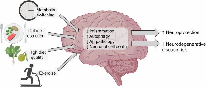 It is well-established that CR can enhance healthspan in lots of species, together with people, and will increase lifespan in some preclinical fashions46. CR additionally has been hypothesized to guard cognitive perform. CR is outlined as lowering each day caloric consumption beneath upkeep ranges with out inflicting malnutrition. The mechanisms by which CR could also be neuroprotective are summarized in Fig. 3.