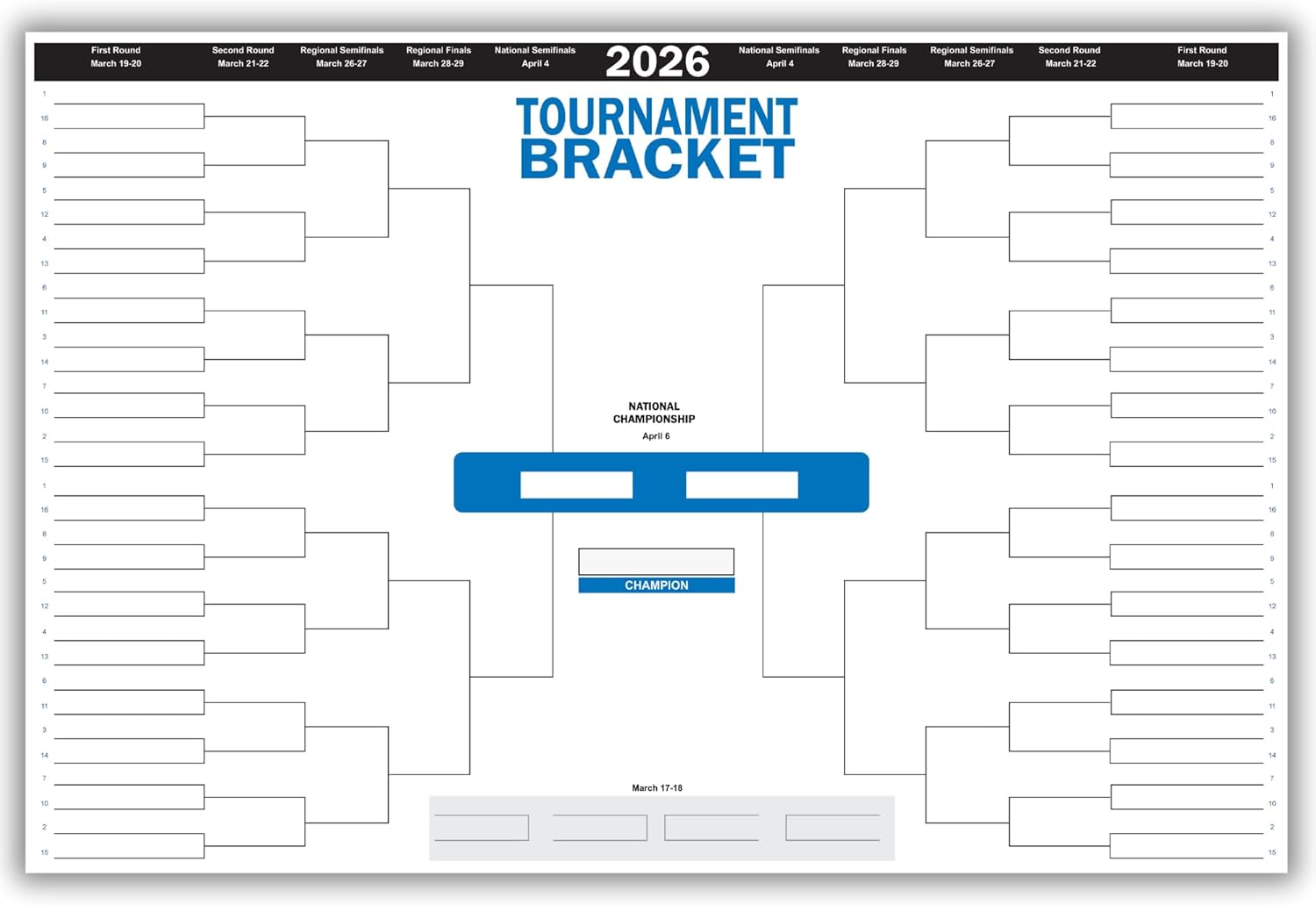 Men’s March Basketball Tournament Dry Erase Bracket Poster