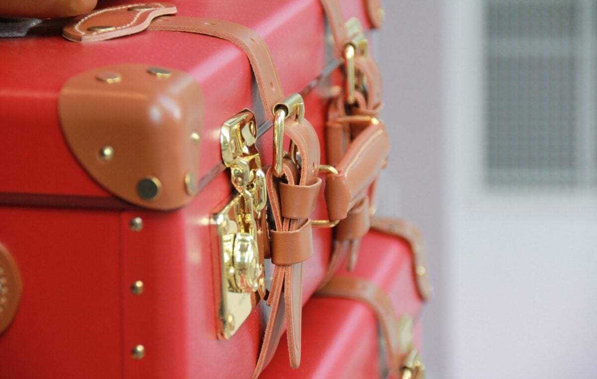 The outdoors makes use of the normal Globe-Trotter development. The brass {hardware} is customized.