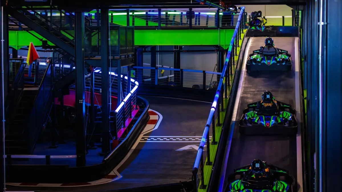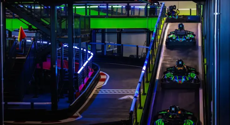 The facility will characteristic quite a few points of interest, together with “high-speed electric Superkarts on a multi-level track” and an arcade with skilled racing simulators and two-story laser tag area, in a 98,000-square-foot facility. There’s additionally bowling, a movie show and extra, the corporate mentioned.